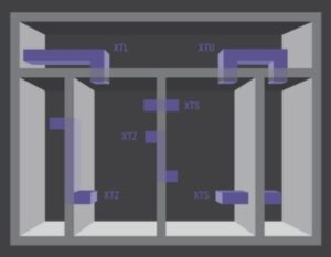 When multiple rooms connect to a shared return-air system, cross-talk attenuators are used to ensure each space remains acoustically isolated.