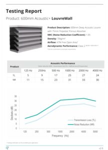 Con-Form acoustic louvre systems are supported by published performance data, including: