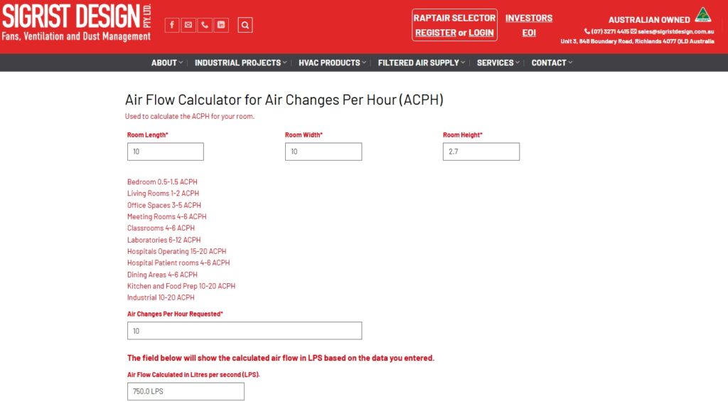 However, there are several specialised situations where air change rates (ACH) are the more appropriate or even the required design method and needs to also be considered. Quite often As1668.2 will dictate minimum code requirements and Air Change rates will dictate best practices and both should be considered in special applications.