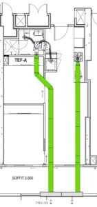 We propose utilising the EcoDuct flat duct system for all wet-area exhaust runs within each apartment, connecting exhaust grilles [back to a common riser] [or discharging locally with wall mounted louvres].