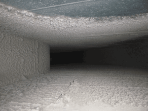 – Visual inspection of internal HVAC components for mould growth, biofilm, dust and particulate accumulation, moisture ingress or staining, corrosion or deterioration impacting hygiene.
