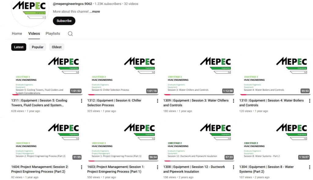 The MEP Engineering Co YouTube channel offers more than 30 hours of free training across 32 long-form videos, made openly available to engineers and contractors across the HVAC and building services industry.